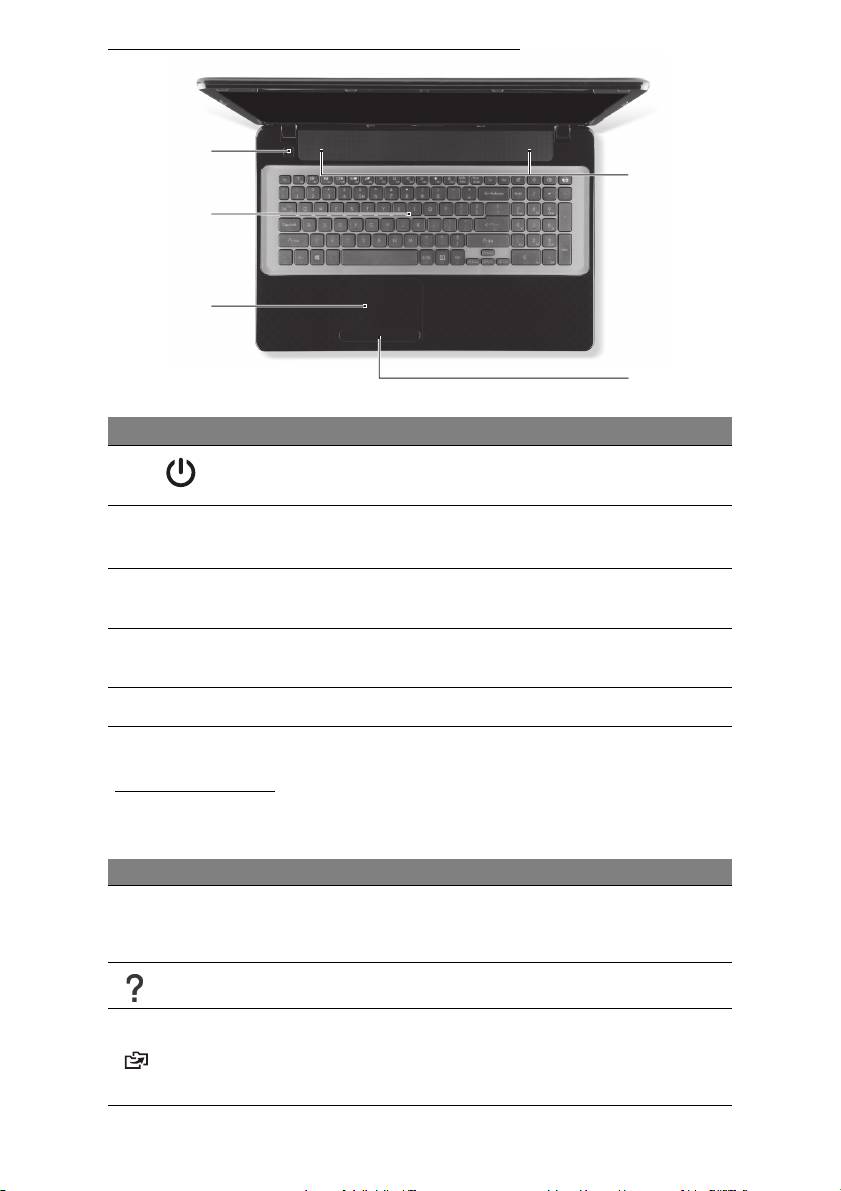 Slår på och stänger av datorn. Anger om