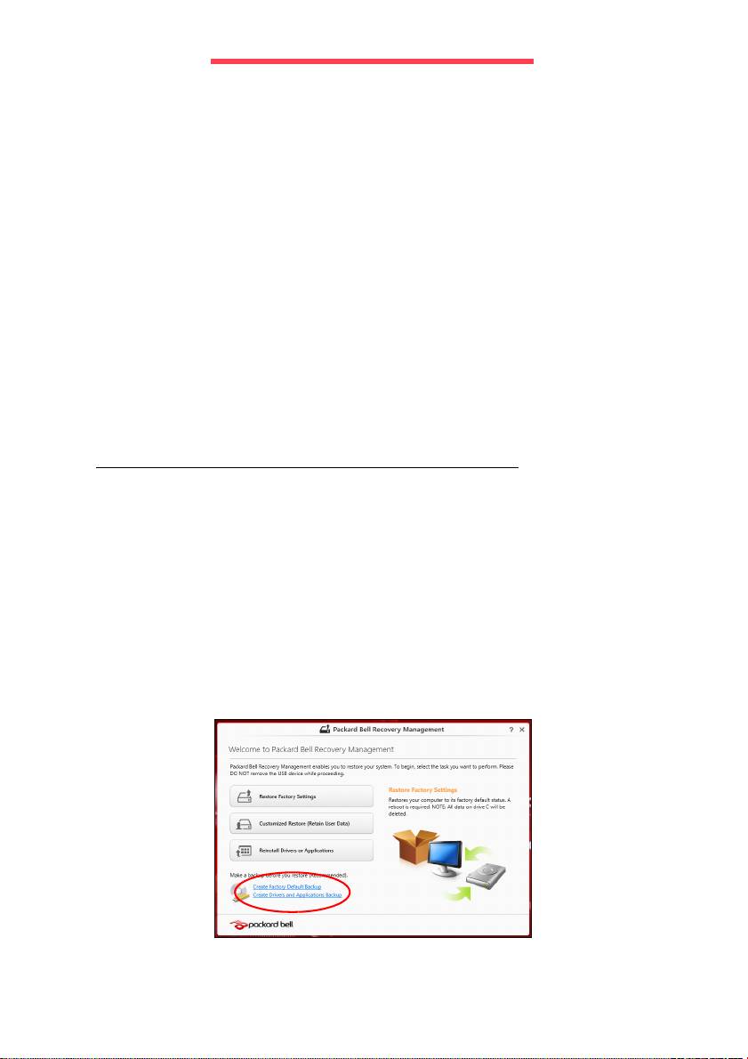 • Depuis Démarrer, saisissez ‘Recovery’ puis cliquez sur Packard Bell
