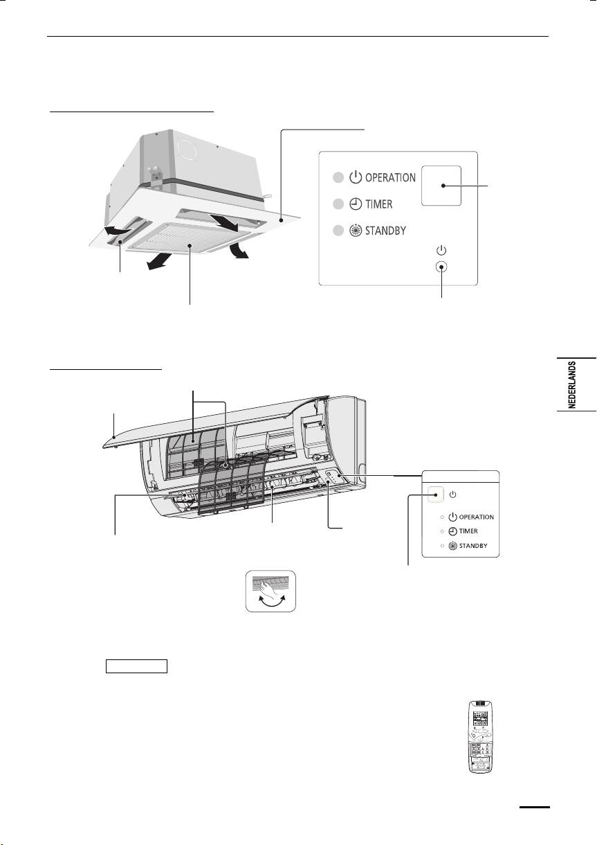luchtrichting kan afwijken van de aanduiding op het display van de afstandsbediening.