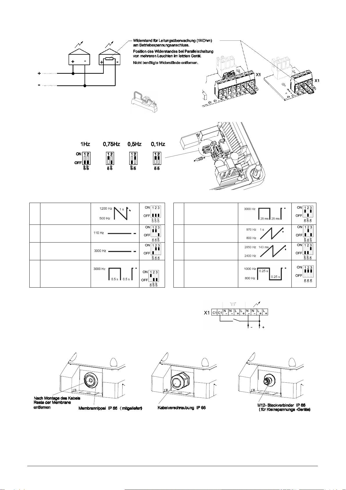 Blitzfolgefrequenz 0,1 / 0,5 / 0,75 / 1 Hz