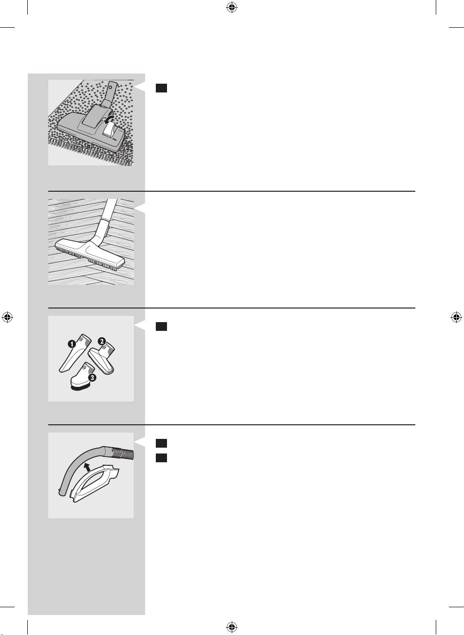 - Accesoriul pentru spaţii înguste şi peria mică.