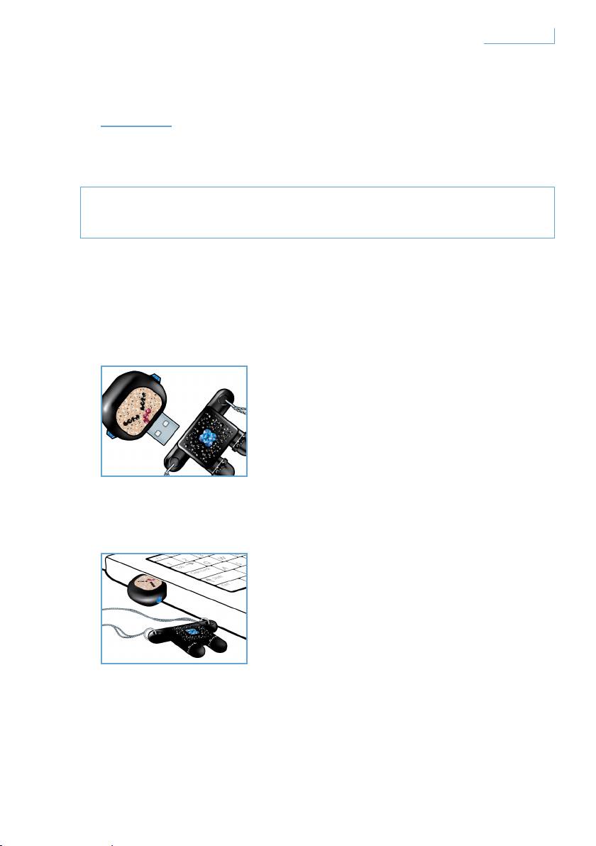 2 將記憶匙的USB 連接器插入電腦的其中一個USB 連接埠。