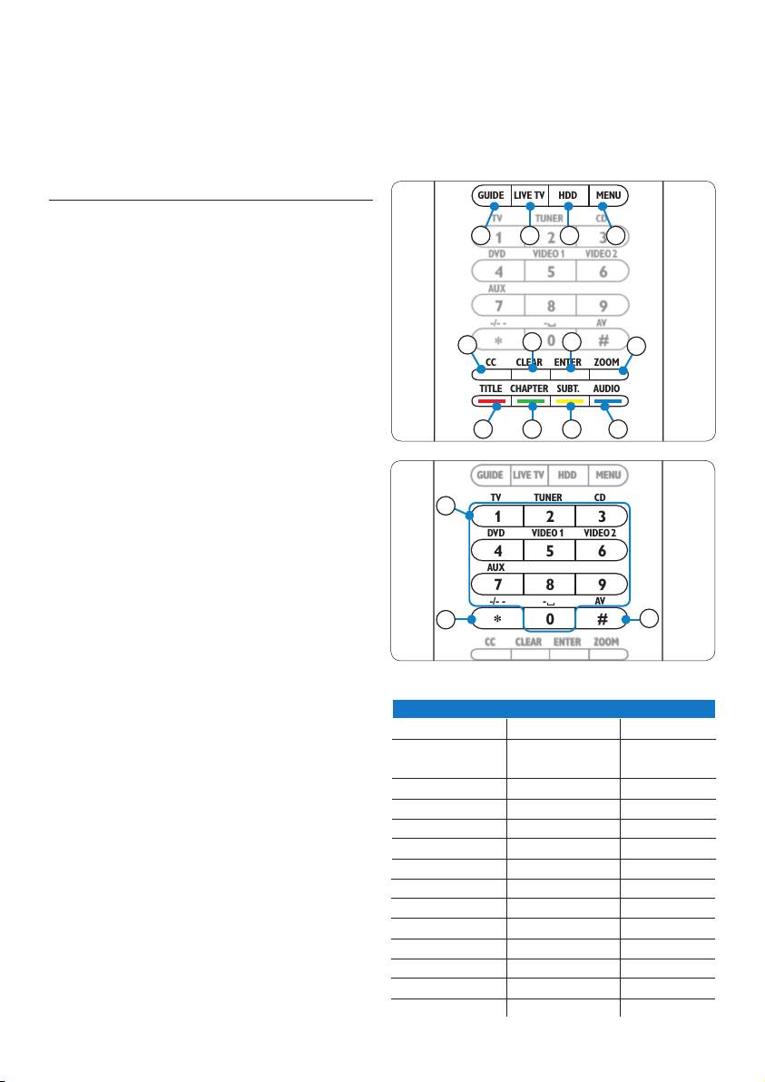 9. Apparaattoetsen (gids, Live TV, HDD, Menu)