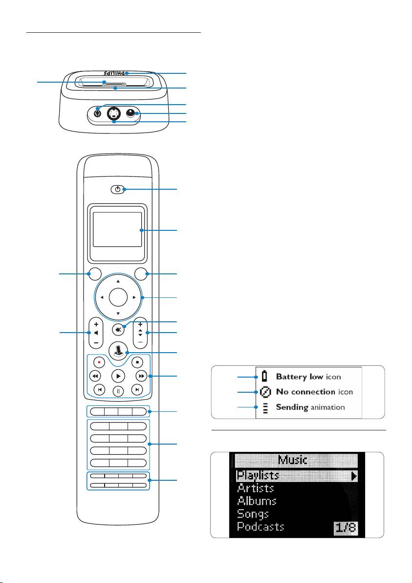 Overzicht van de universele afstandsbediening en het basisstation voor de IPod™