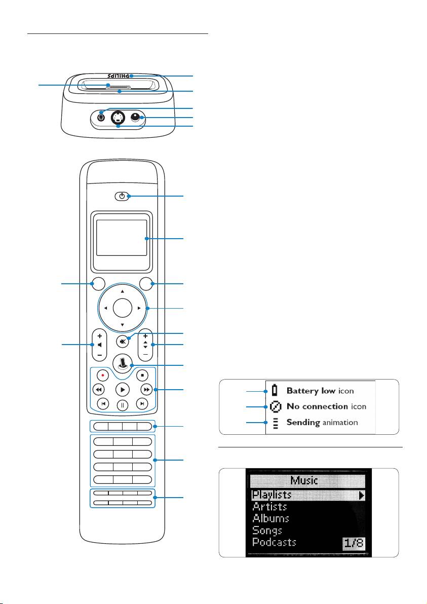dockningsstationen och fjärrkontrollen.