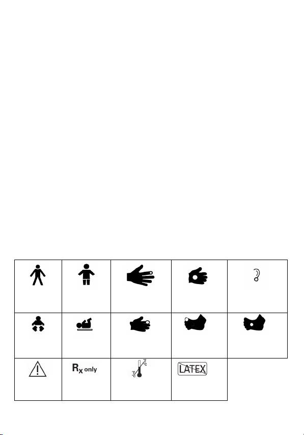 Taikymas naujagimiams: nurodytas tikslumas, jei jutiklis naudojamas