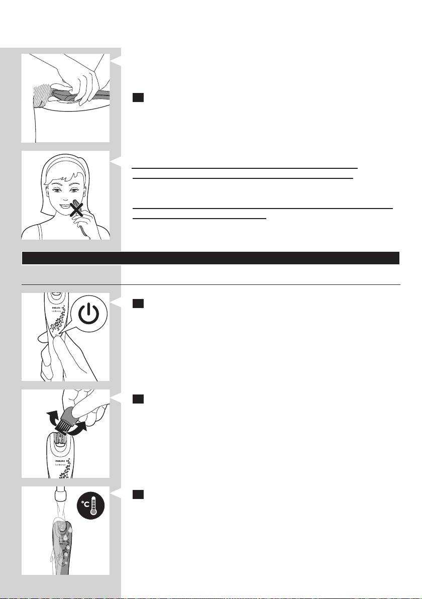 - Verwenden Sie den Epilierer nicht bei Hautreizungen, Krampfadern,