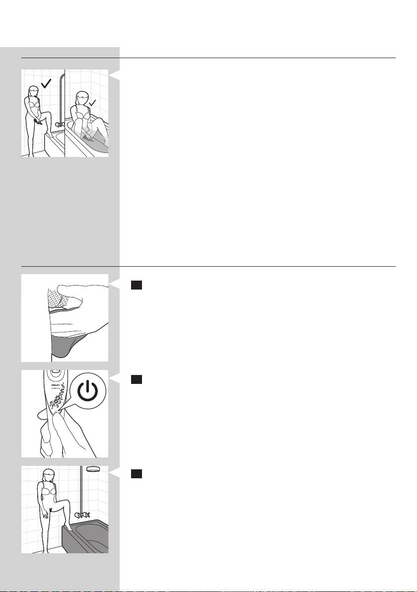 beginnen, da Wasser die Haut entspannt und die Epilation weniger