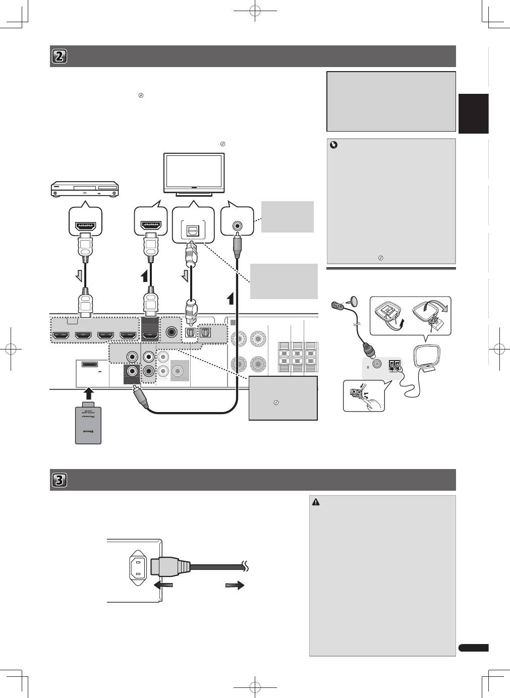 - Connecting a TV and playback component Plugging the receiver