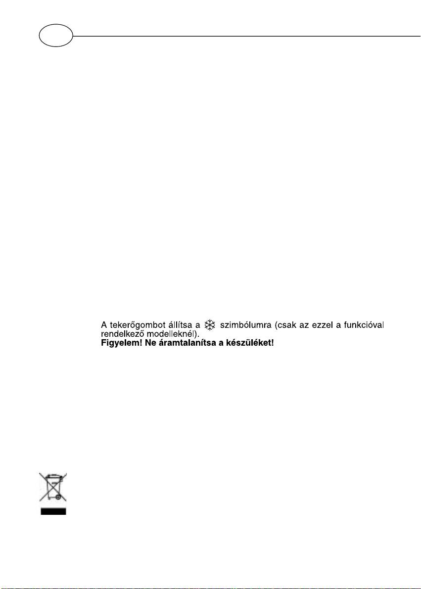 működését. A kapcsolóba beépített ellenőrző lámpa a fűtés idején világít.
