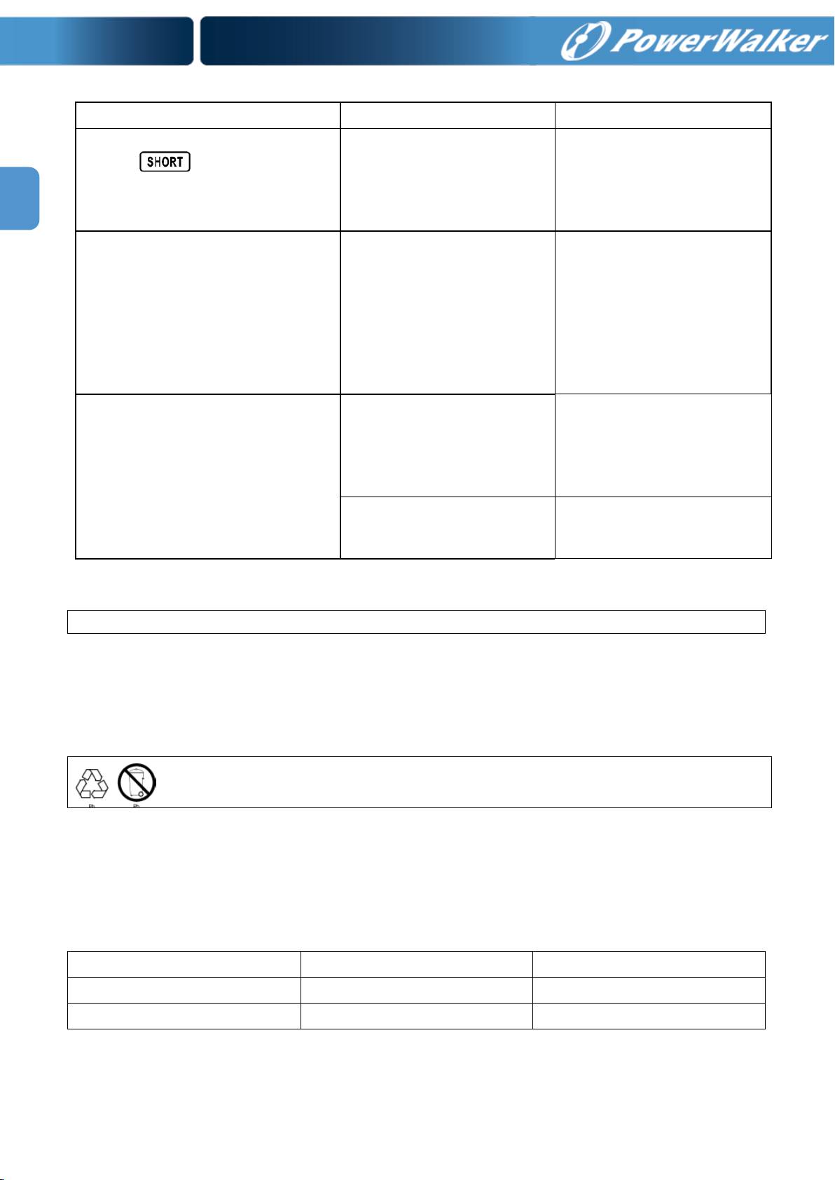O SAI contine partes não reutilizáveis. A bateria tem uma vida de 3 a 5 anos a 25 ° C de