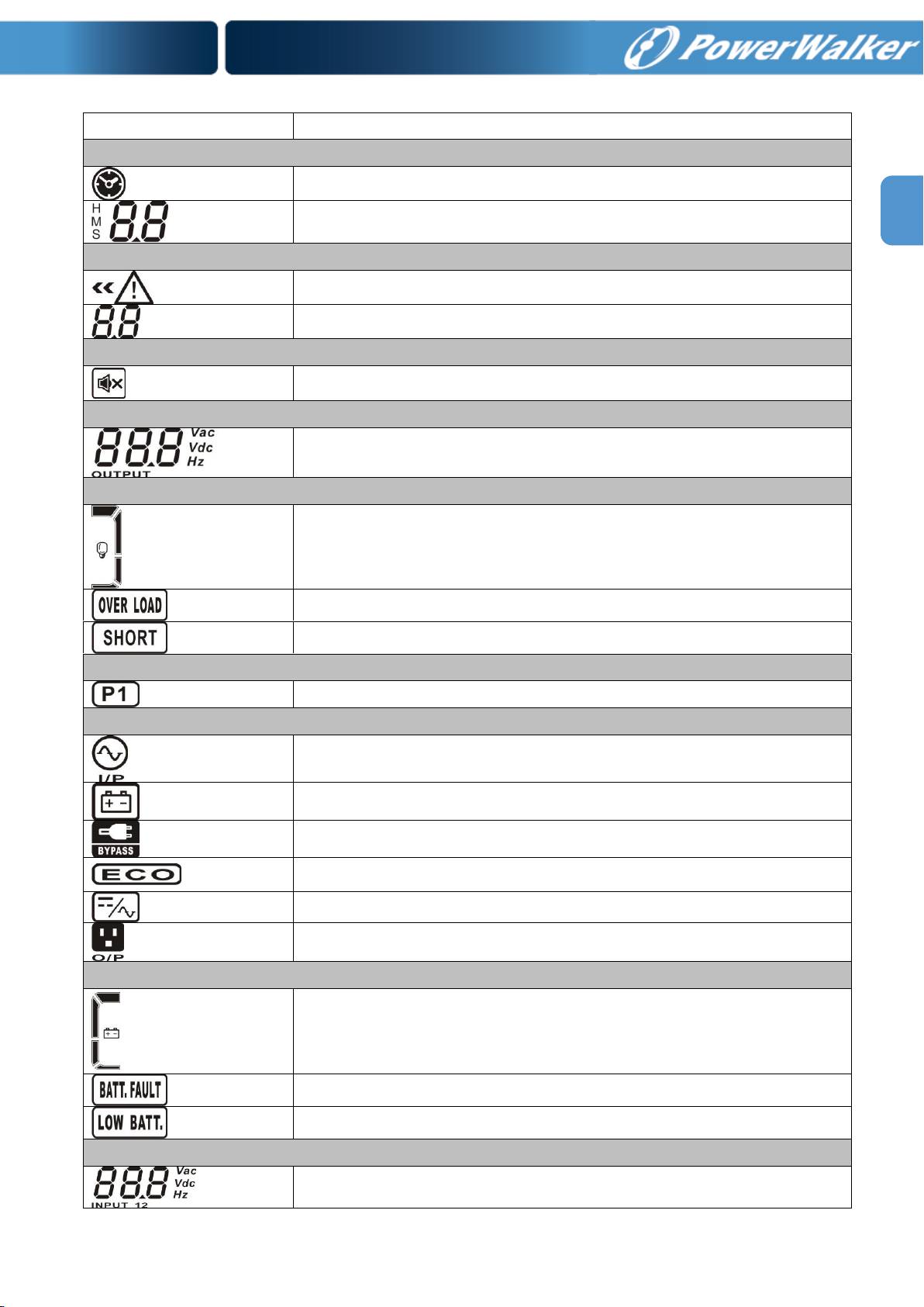 PowerWalker VFI 1000R LCD: INDICE