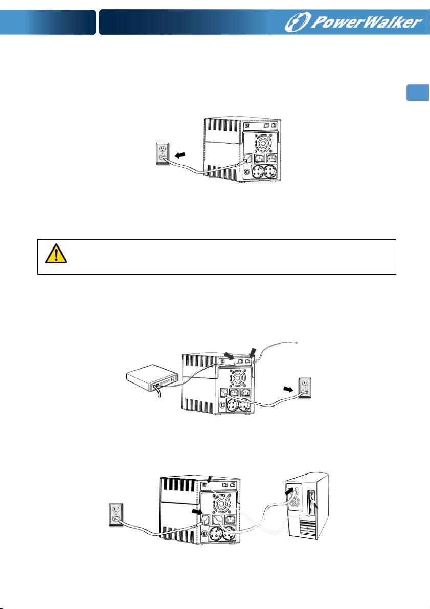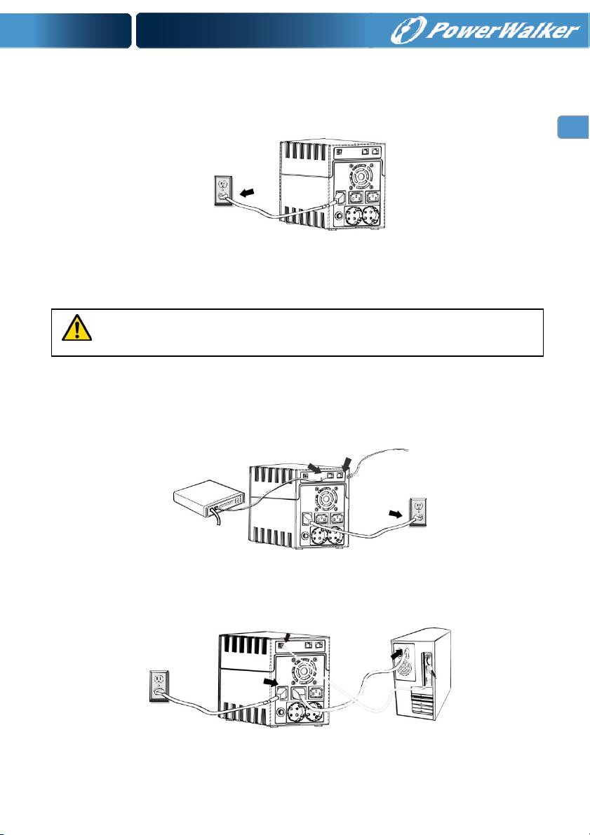 Připojtezástrčkyzátěžíkvýstupnímzásuvkám,kterésenacházínazadnímpaneluUPS.Jednodušezapněte