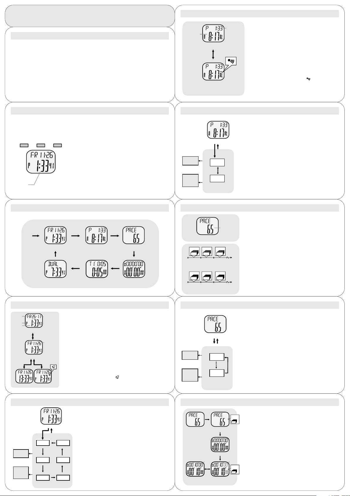+ To select among the Current Tim e , Daily Alarm, Pacer,