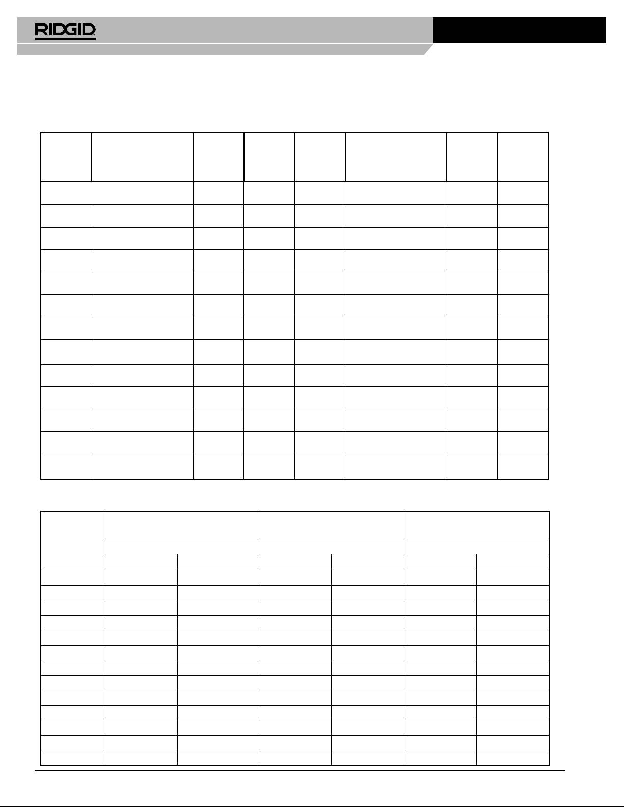Βλ. κατάλογο RIDGID.