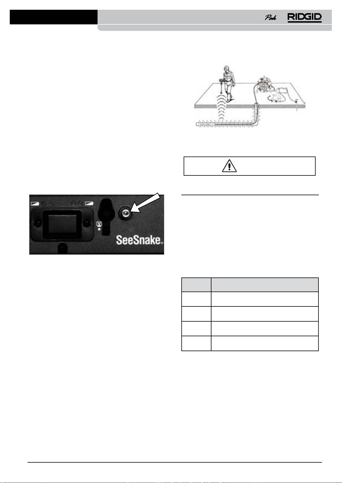 etmenize olanak sağlar. SeeSnake kamera kablosunun hat boyunca tespit ve