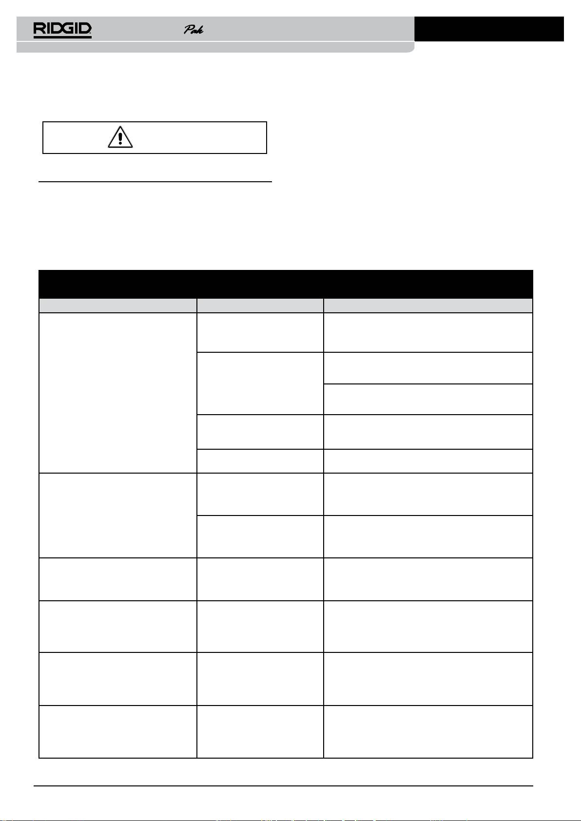 обращаться в отдел технического обслуживания компании RIDGID (www.