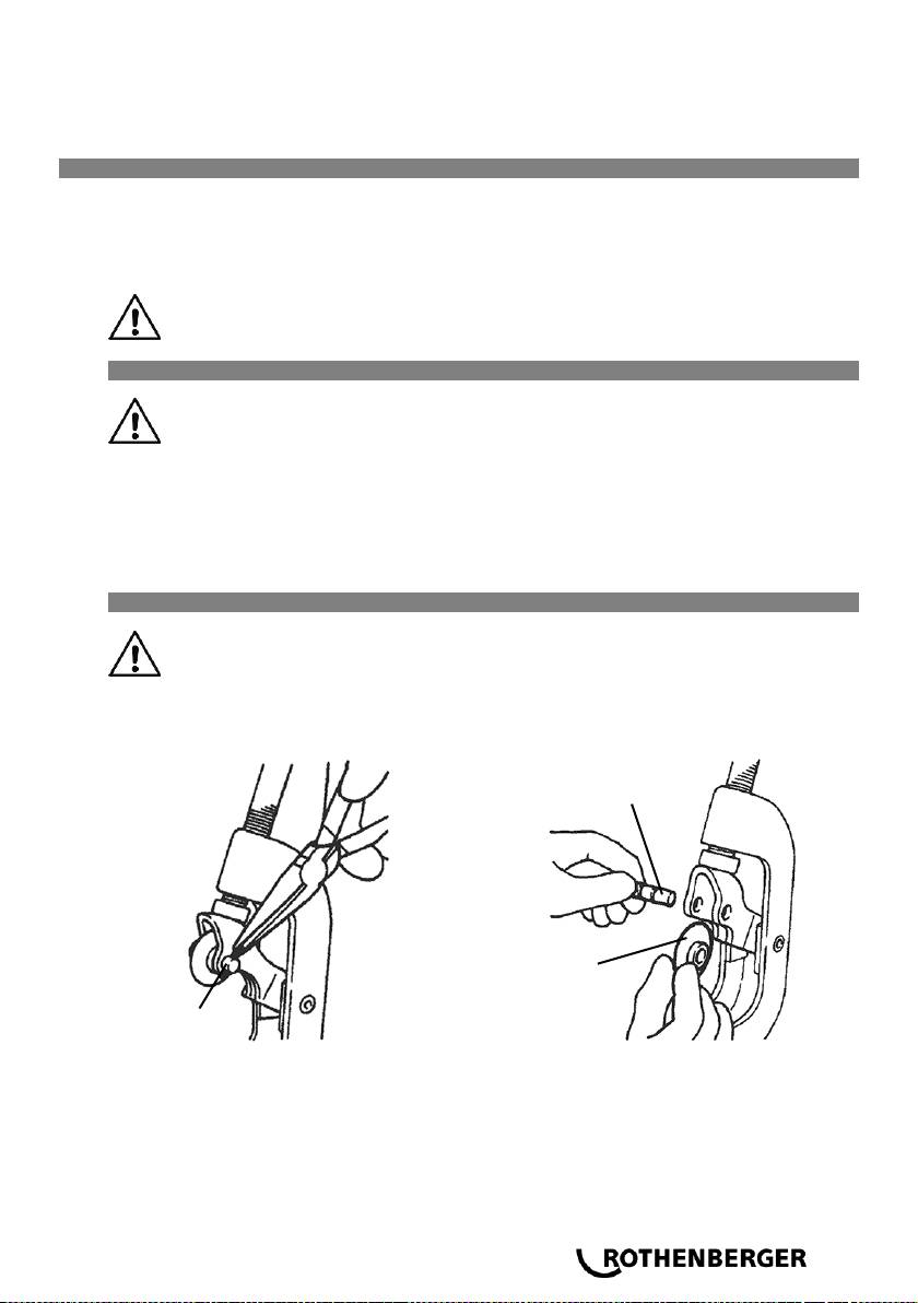 • Należy skontrolować szczęki gwintujące, obcinak do rur oraz wewnętrzny gradownik pod