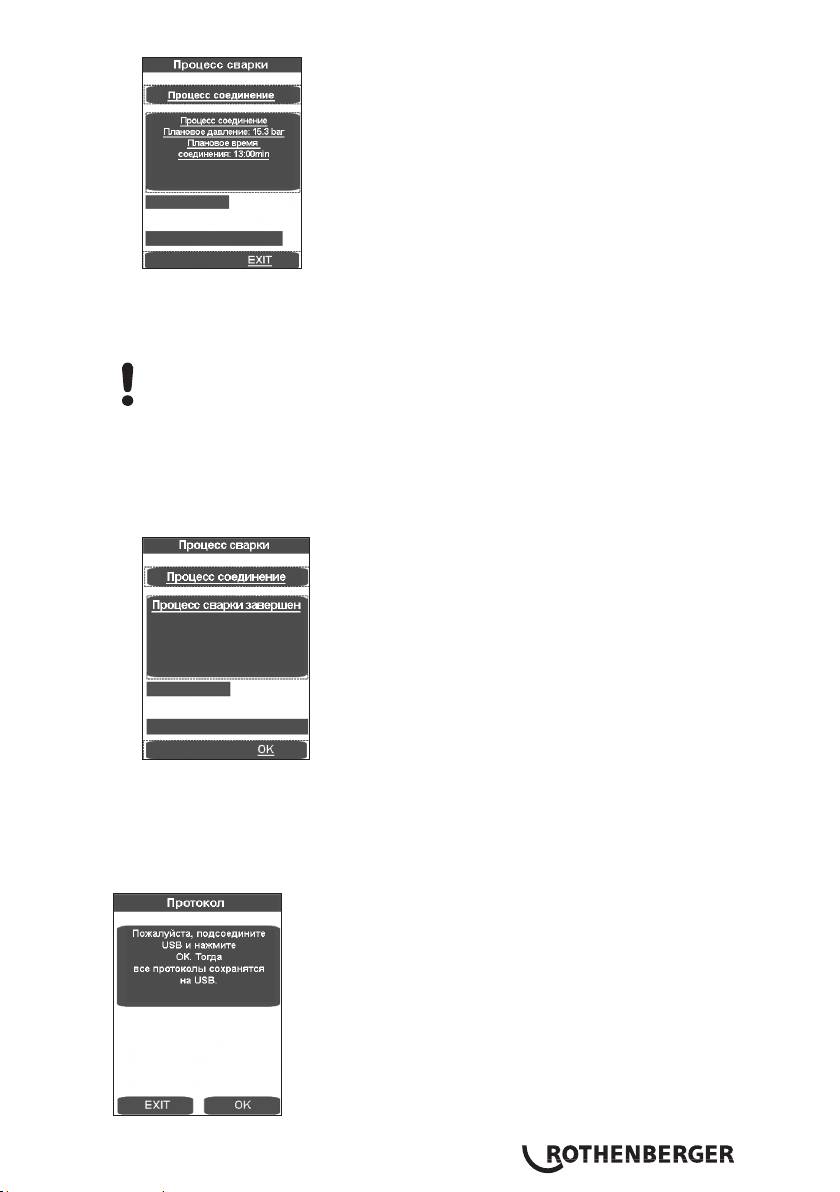 При остановке процесса сварки нажатием EXIT (ВЫХОД) появляется уведомление