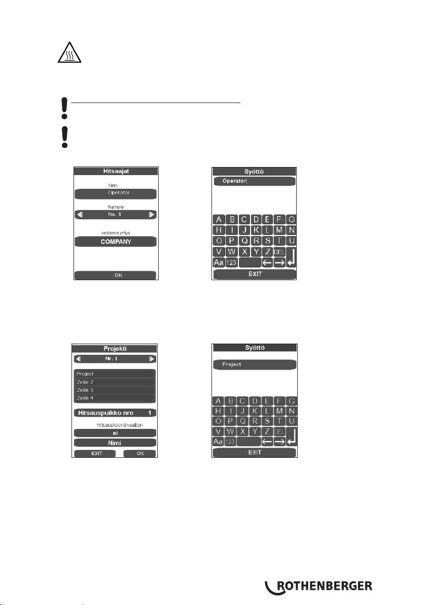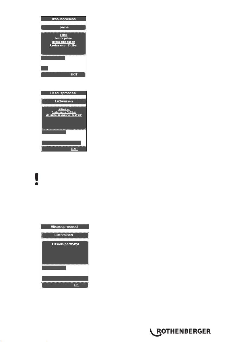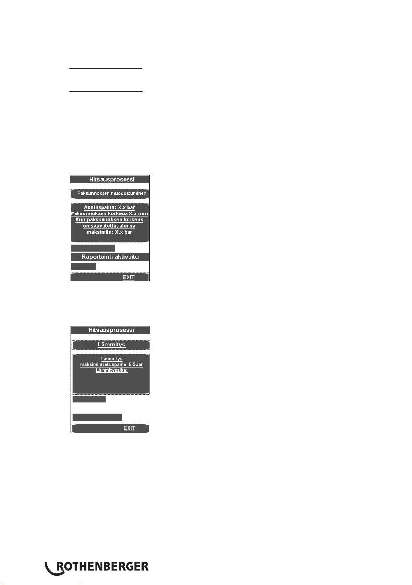 sulatus-, jälkilämmitys- ja hitsauspaineeseen.