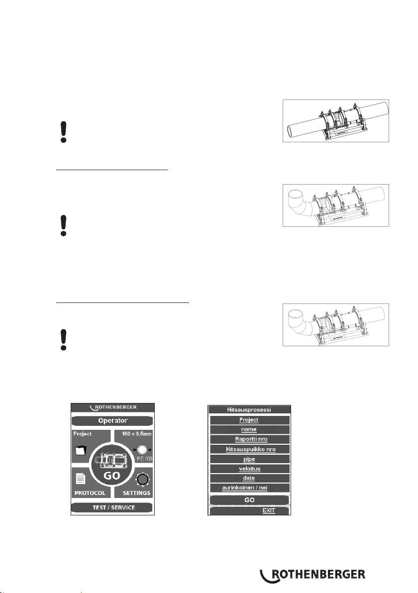 Aja kiristyselementit yhteen, säädä sopiva paine putken mukaan ja tarkista että työkappaleet