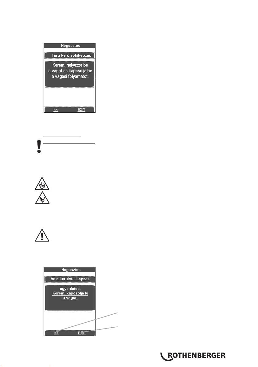 A munkadarab-végek érintkezése előtt nem sokkal (kb. 1 cm-rel) állítsa le az