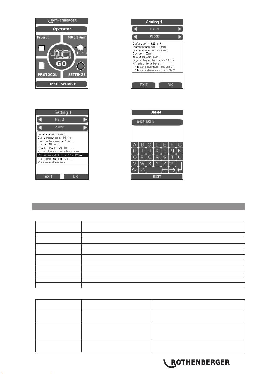 Le masque de saisie apparait suite à l’appui sur le champ d‘affichage correspondant. Les données
