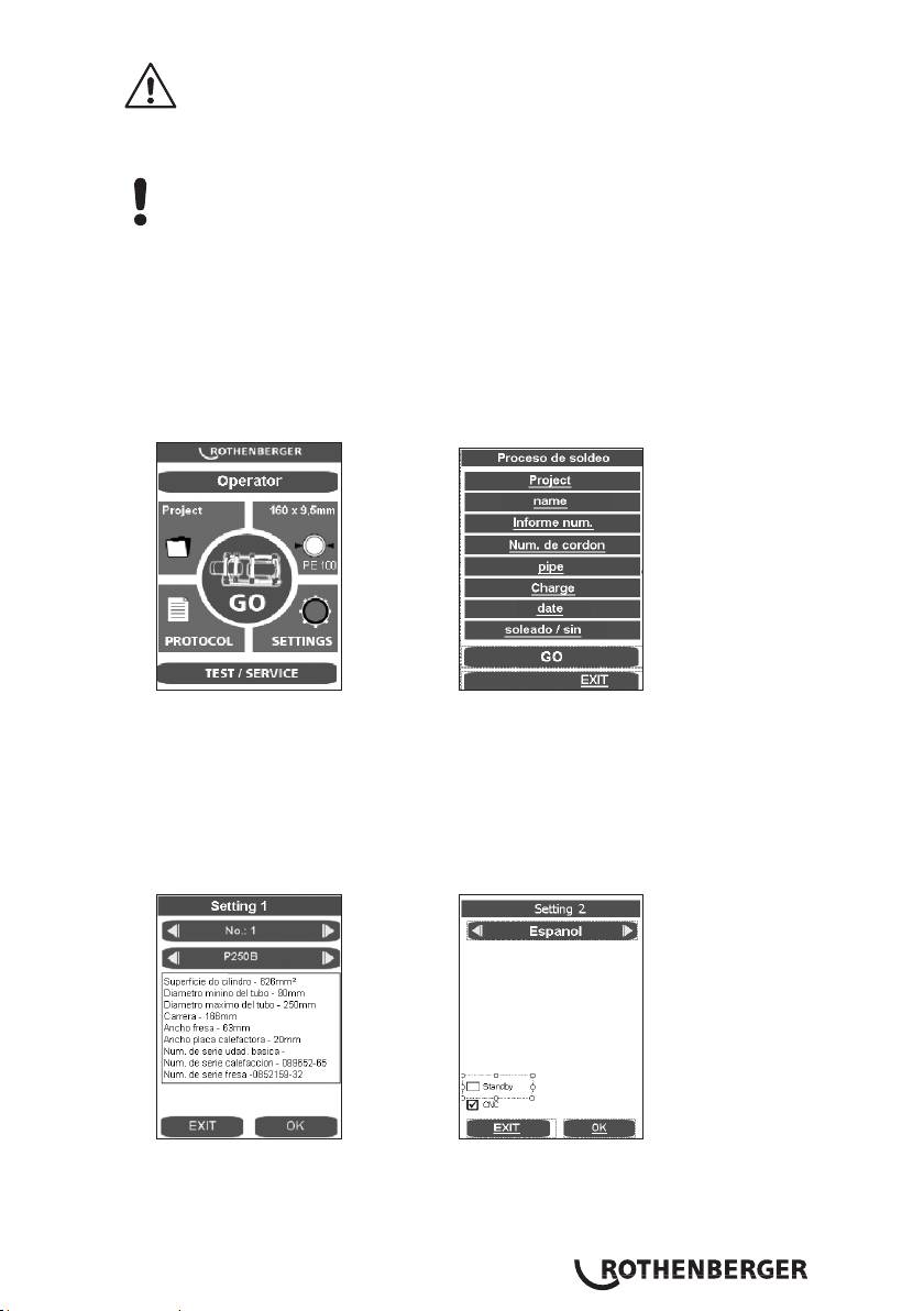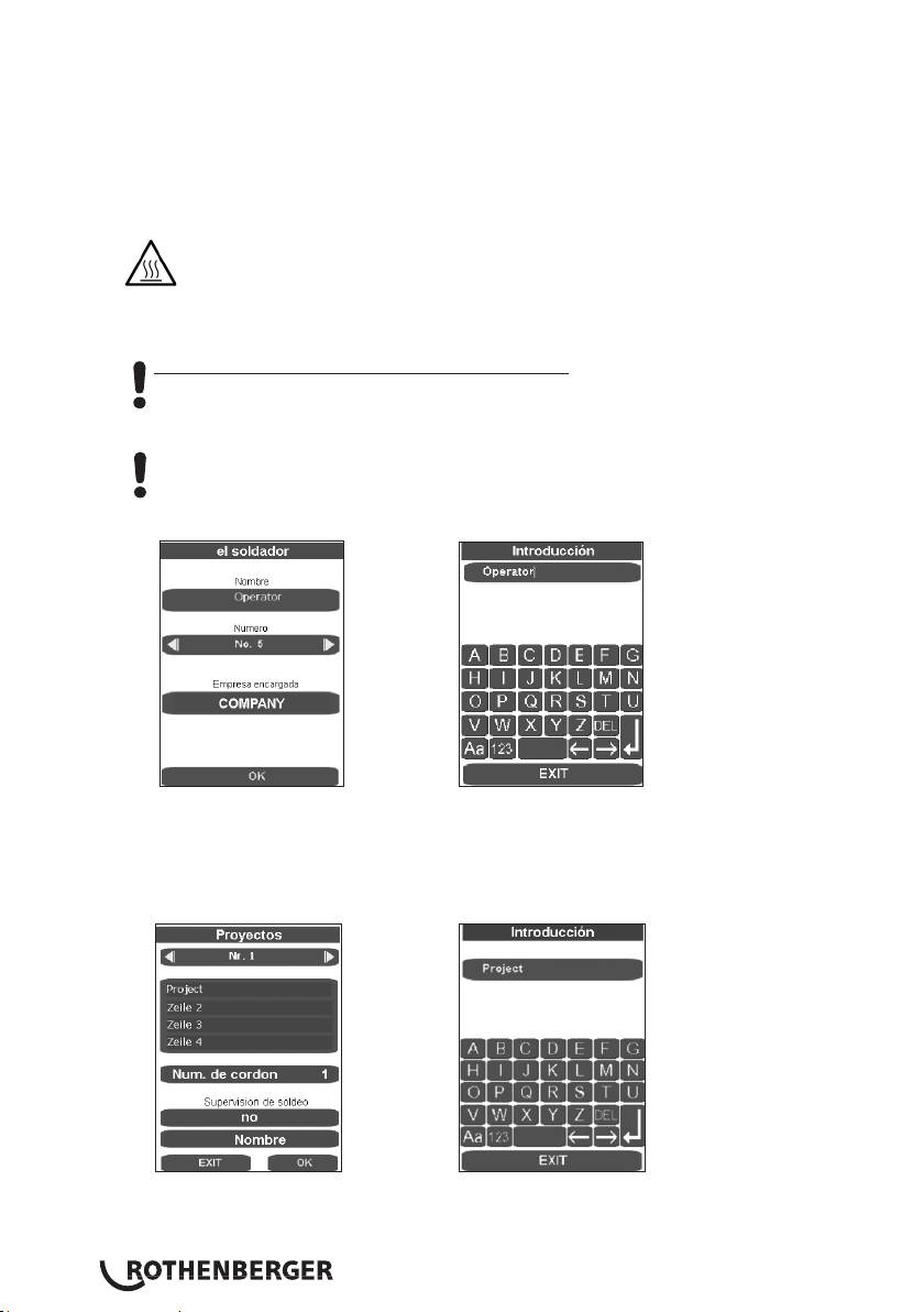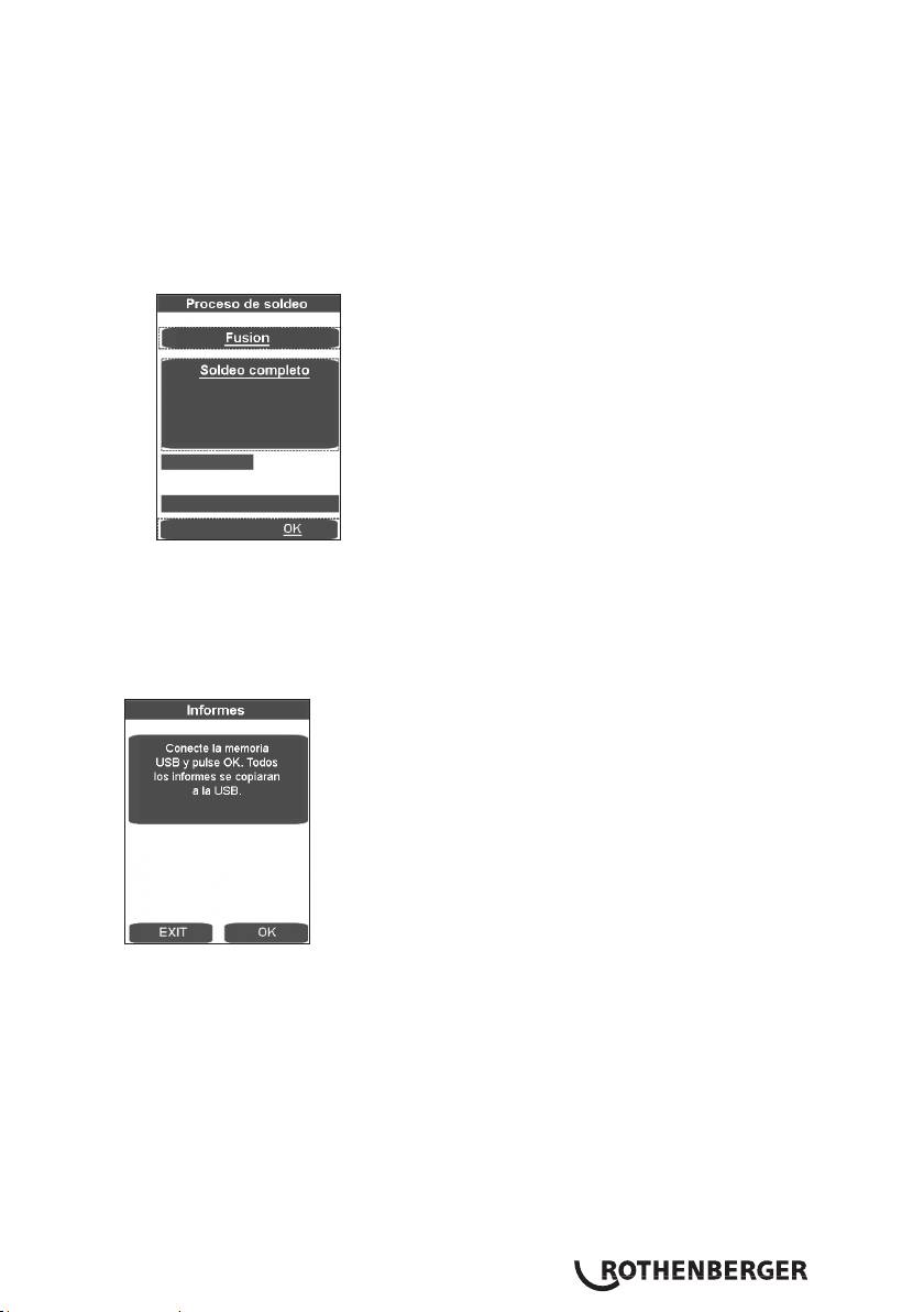 del usuario“, se purga la presión y se guarda el parámetro de soldadura. Confirme el mensaje