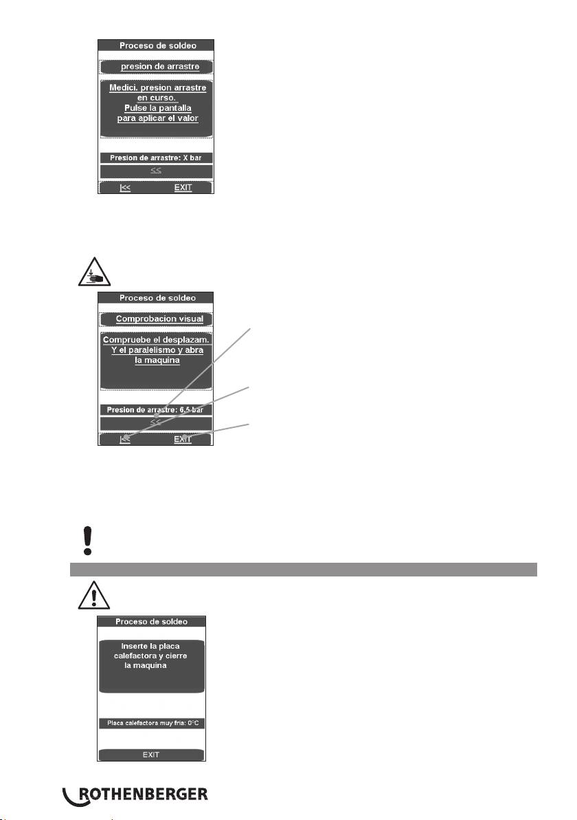 Cuando la máquina se desplaza lentamente, pulsar la pantalla. La presión de arrastre medida