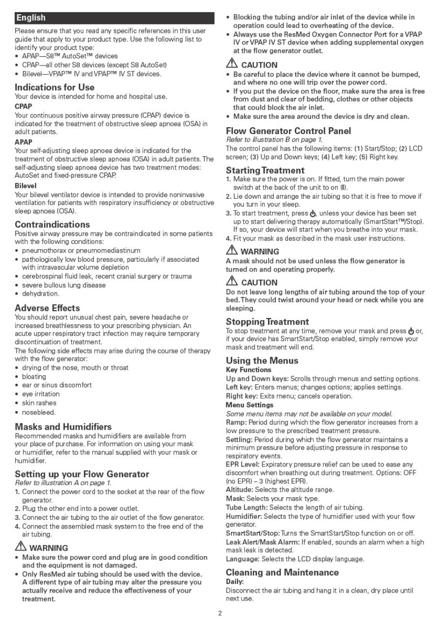 • The flow generator should not be used with anaesthetised