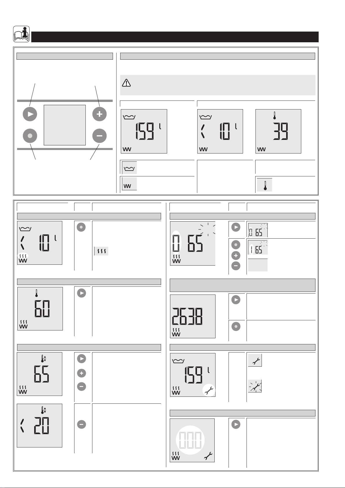 Touches de fonction Affichage standard: Quantité d’eau mitigée