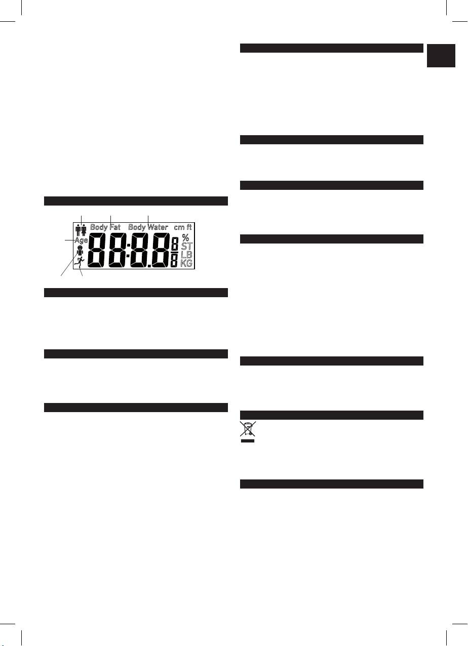 • Pri meraní telesného tuku a vody v tele je nutné, aby ste sa na váhu postavili naboso.