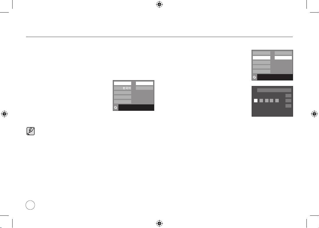 Samsung NV24 HD: Первое включение фотокамеры : Настройка даты / времени и выбор языка