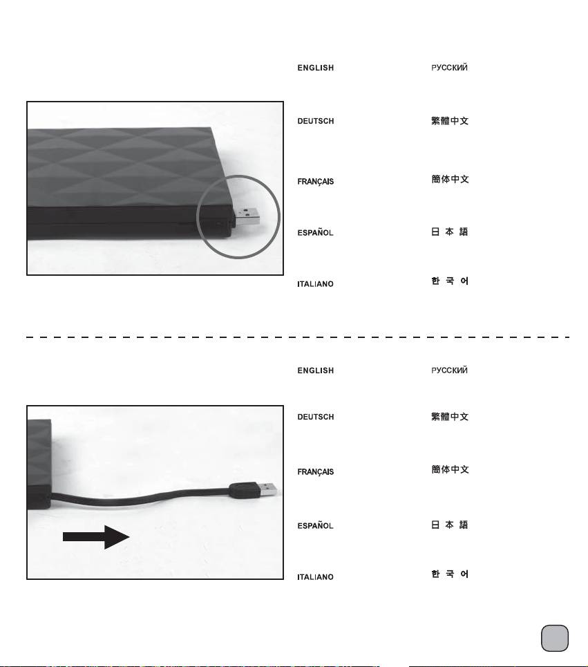 將USB纜線由光碟機外接盒右方拉出。