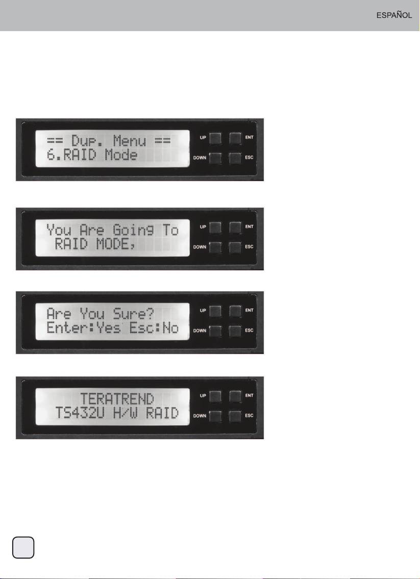 1. Seleccione “RAID Mode” usando el botón de flecha. Se mostrará la siguiente pantalla: