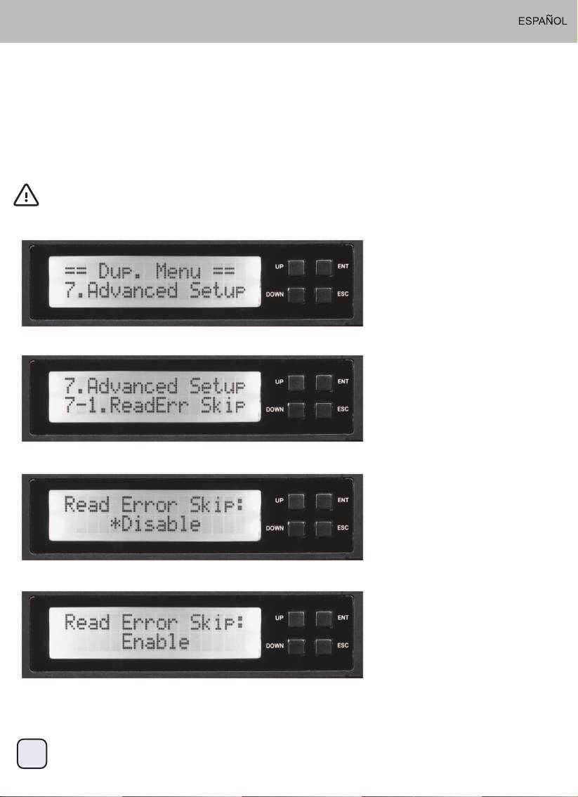 2. Use las flechas para moverse hasta “Read Err Skip”. Se mostrará la siguiente pantalla.
