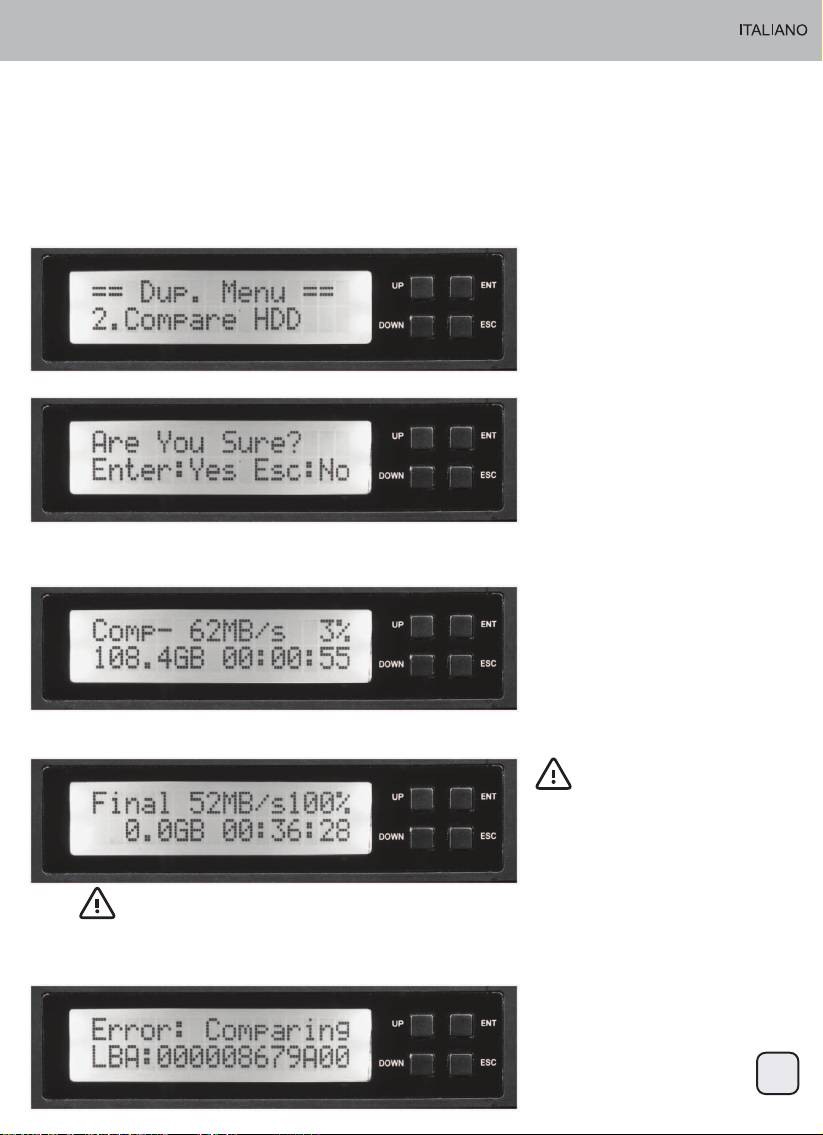 3. Premere il tasto ENT e la funzione “Compare HDD” (Confronta HDD) si avvierà. Il sistema rileverà
