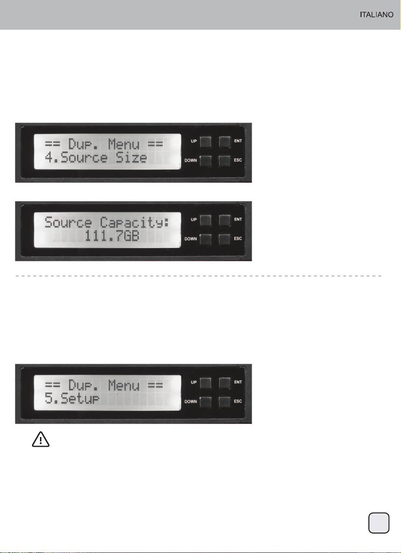 La funzione “Source Size” (Dimensioni origine) è usata per visualizzare la capacità del disco