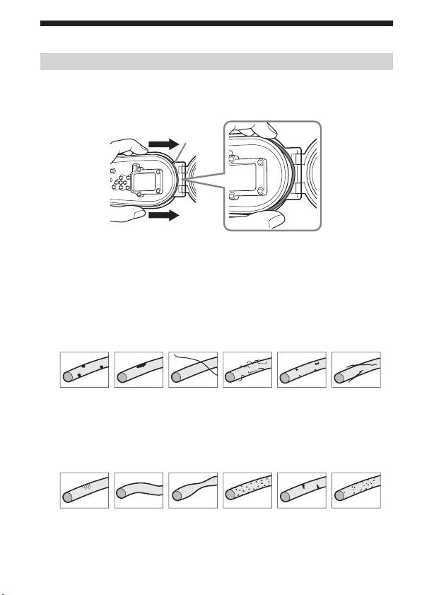 • 检查 O 形环是否有裂痕、扭曲、变形、细微裂痕、刮痕、粘着砂粒等情况。