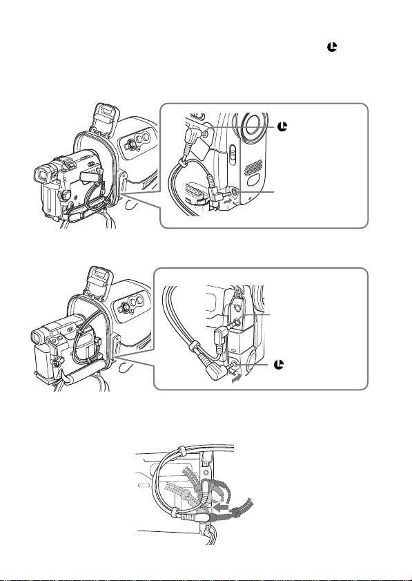 - 4 在遙控器插頭和麥克風插頭從戶外包中露出時停止取出攝影機,然
