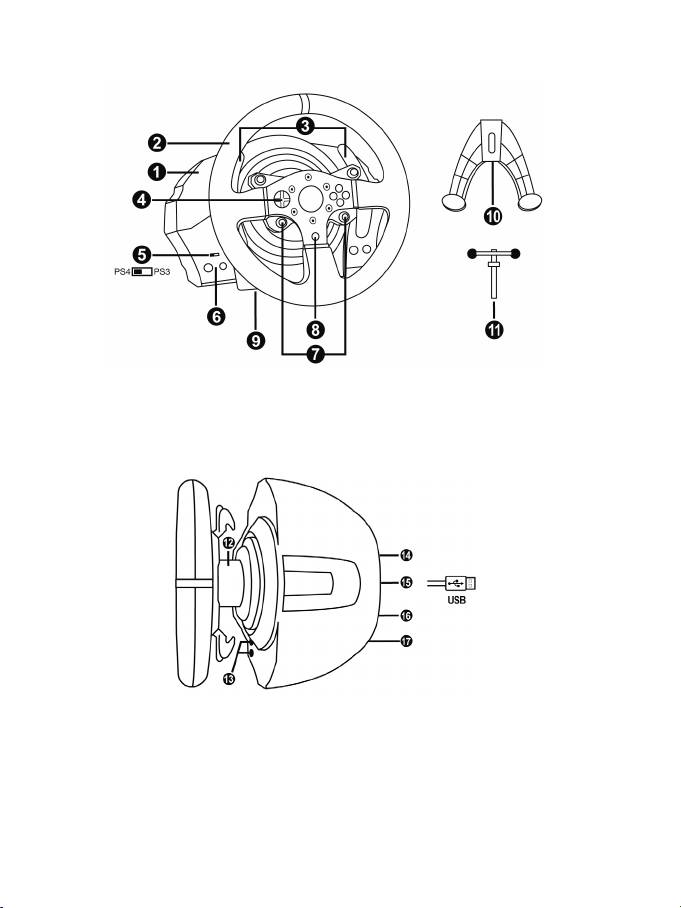 4. Ajuste o interruptor do seletor USB (5) na base do volante para a posição PS3™ ou PS4™,