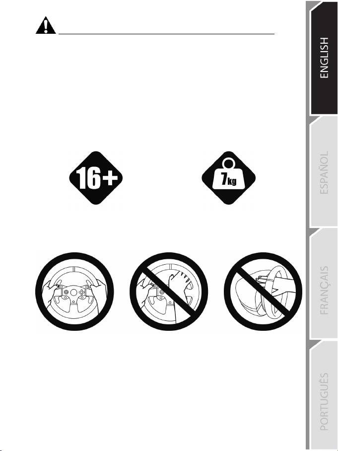 * Make sure that the racing wheel’s base is properly secured, as per this manual’s instructions.