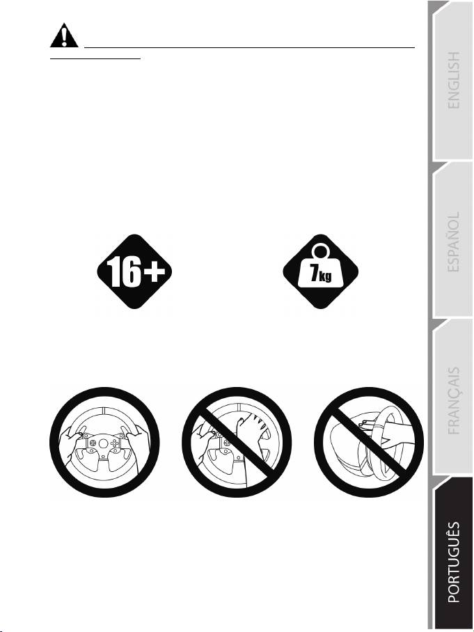 * Durante o jogo, mantenha sempre ambas as mãos posicionadas corretamente no volante sem largá-