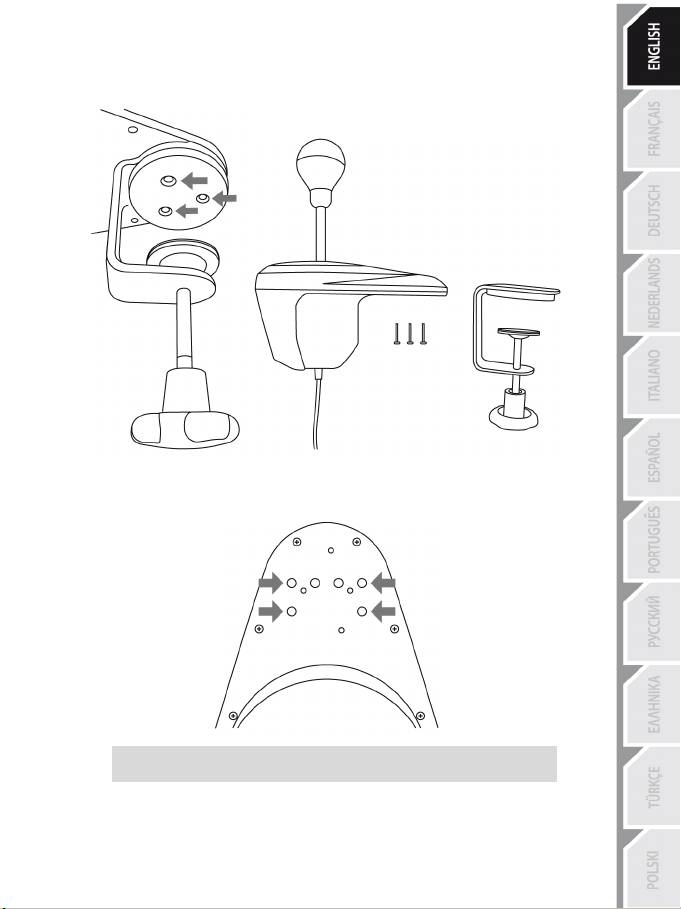 1. Using the included 2.5 mm Allen key (E), slightly unscrew the 4 screws holding the shift plate