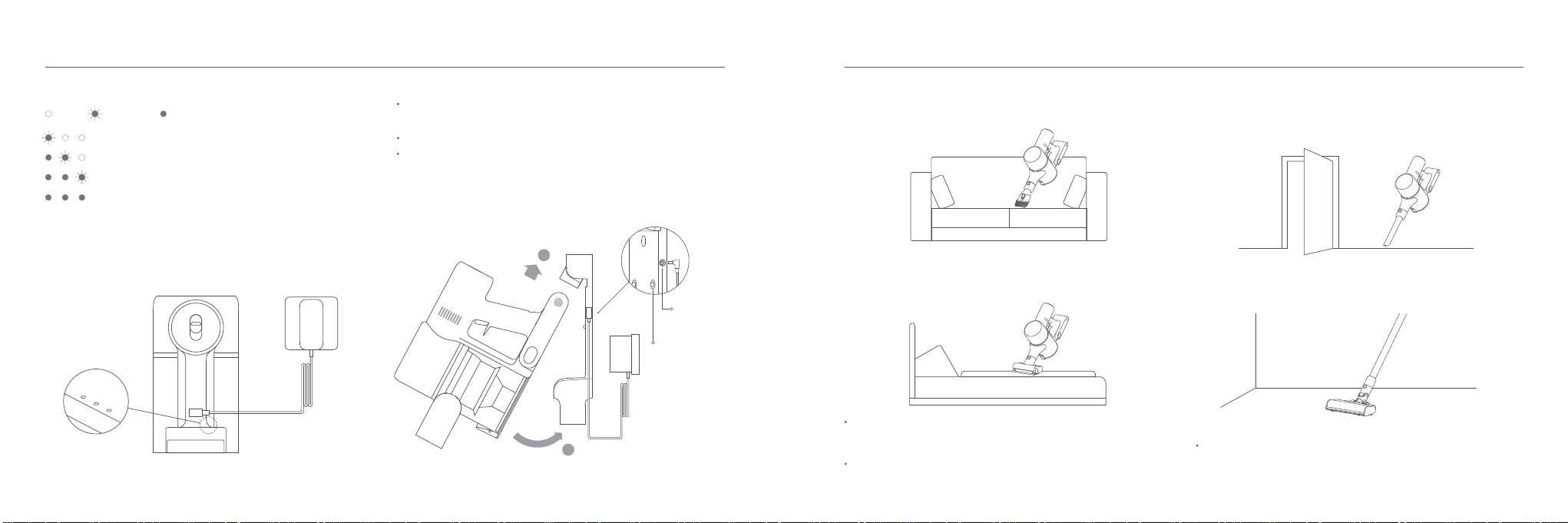 Charging the vacuum cleaner with the charger Charging the vacuum cleaner on the charging mount
