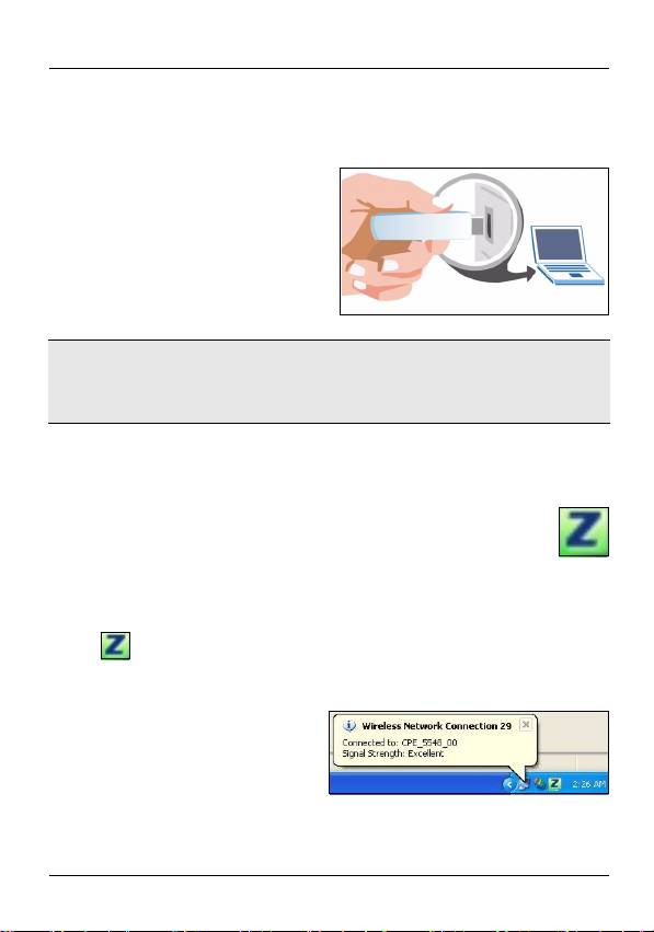 After you install the ZyXEL utility and insert the AG-