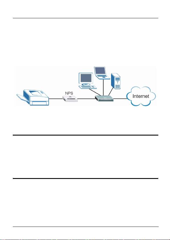 NPS-520 è un server di stampa dotato di una porta Ethernet