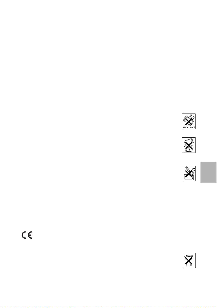 • Pass på at batteriet ikke utsettes for slag eller mistes