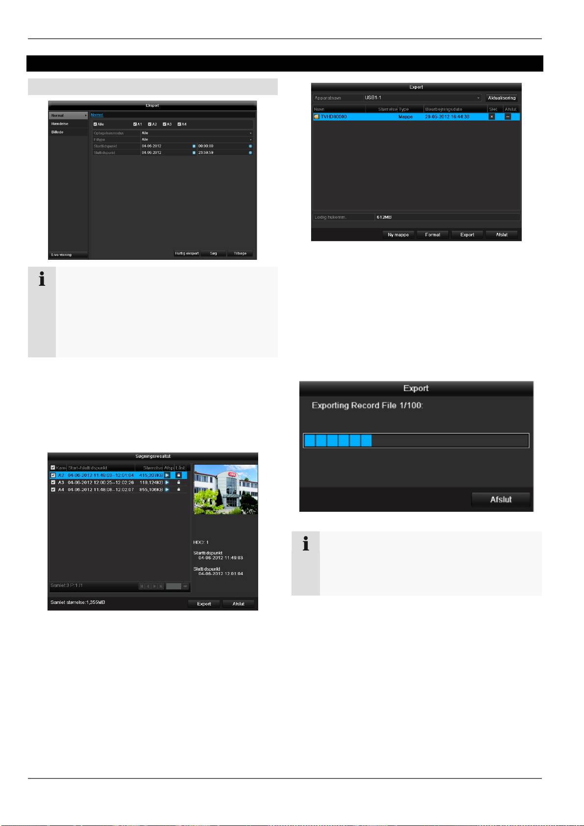 Eksportfunktionen gemmer vigtige optagelser på