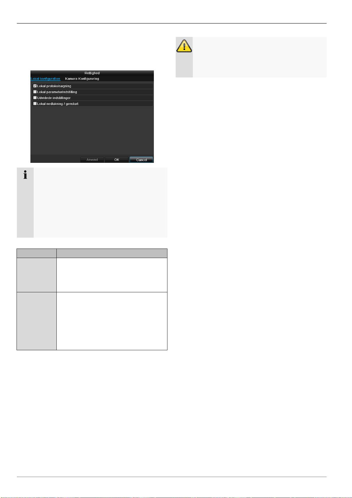 rettigheden til de enkelte kameraer (via netværk